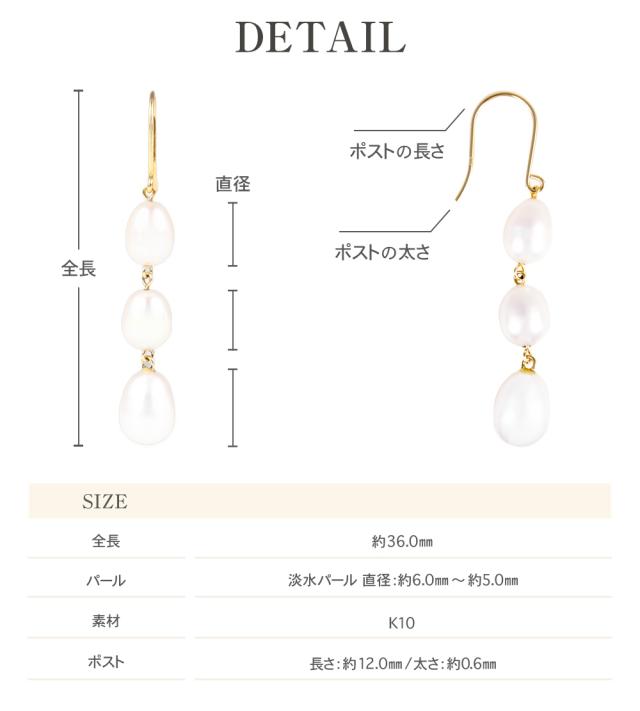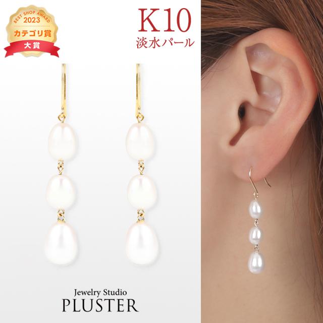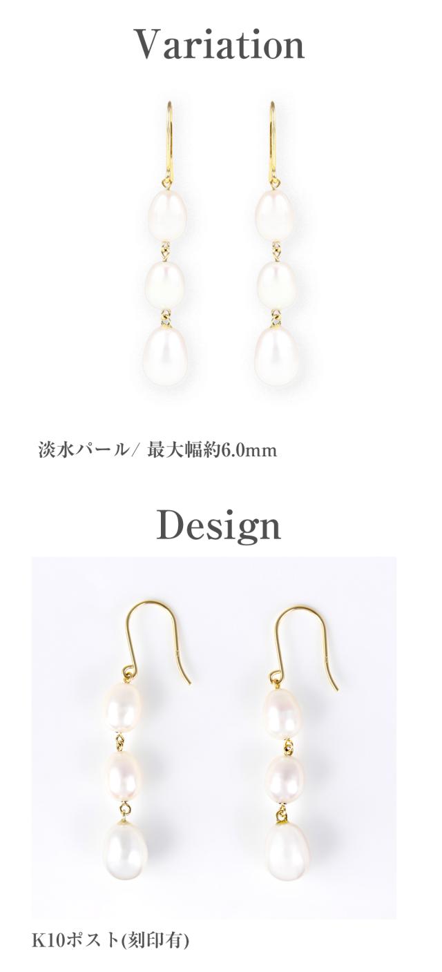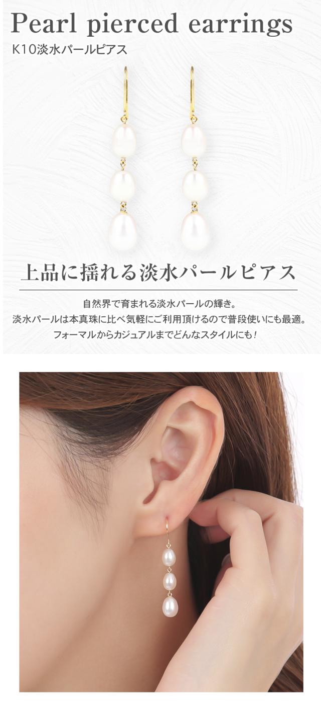 パール ピアス ぶら下がり レディース 金属アレルギー対応 3粒 結婚式 お呼ばれ 冠婚葬祭 普段使い パールピアス 真珠 本真珠 淡水パール 淡水真珠 揺れる 10金 金属アレルギー ニッケルフリー ジュエリー アクセサリー 誕生日 女性 クリスマス プレゼント ギフト