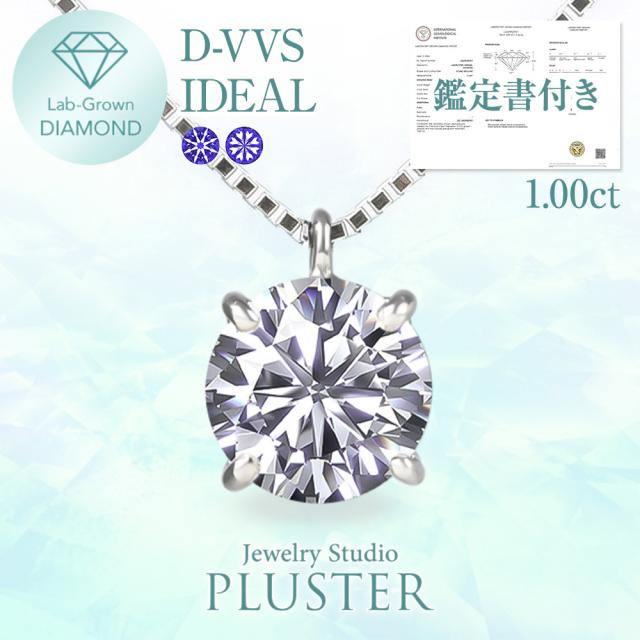 ダイヤモンド ネックレス レディース 1カラット 1.0ct 鑑定書付き 一粒 プラチナ ダイヤモンドネックレス ダイヤネックレス ラウンド 一粒ダイヤ プラチナネックレス PT900 ラボグロウン ジュエリー アクセサリー ブランド 誕生日 クリスマス プレゼント 女性 記念日