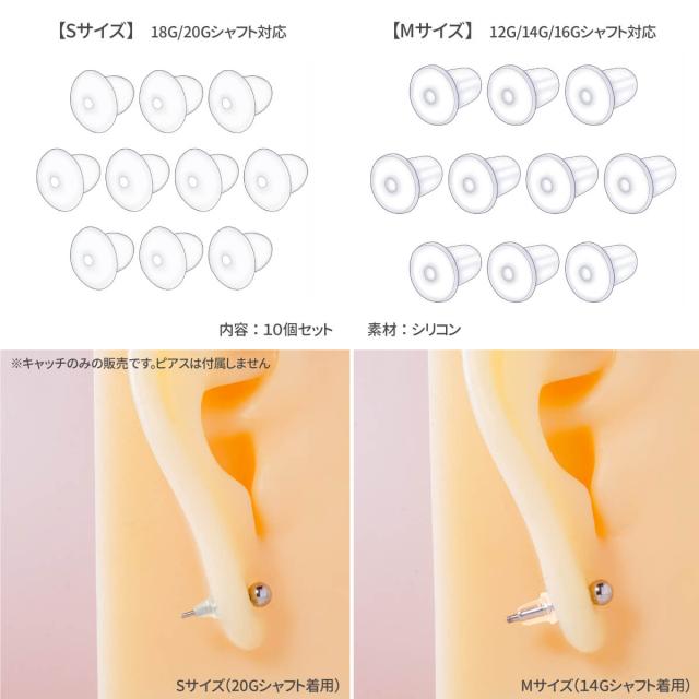 10個セット シリコン クリア ベル キャッチ 12G 14G 16G 18G 20G 軟骨ピアス ボディピアス パーツ スペア スタンダード キャッチのみ