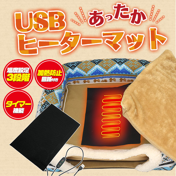 ■敷くだけであったかグッズに変身!タイマー+温度設定3段階付き!USBヒーターマット