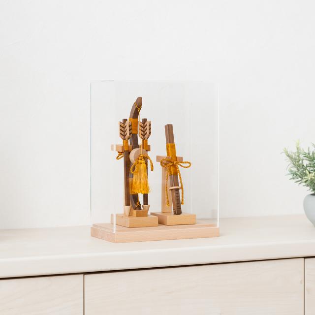 破魔弓 コンパクト おしゃれ 正月飾り 男の子 prefer MOKU 破魔弓 アクリルケース飾り ナチュラル 選べるカラー2種 2026年 初正月 ミニサイズ 矢 弓 太刀