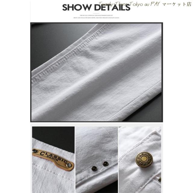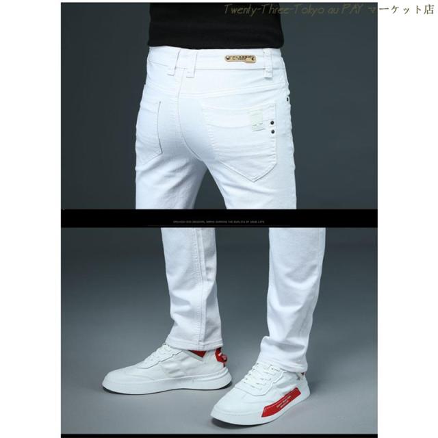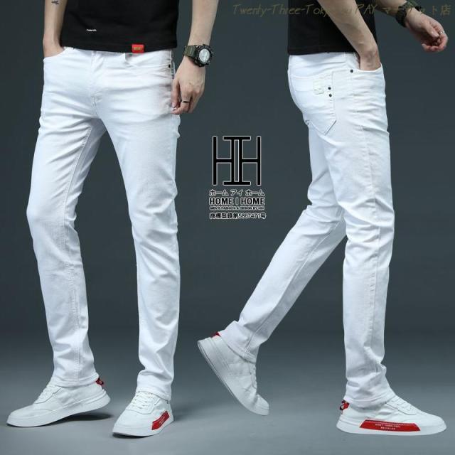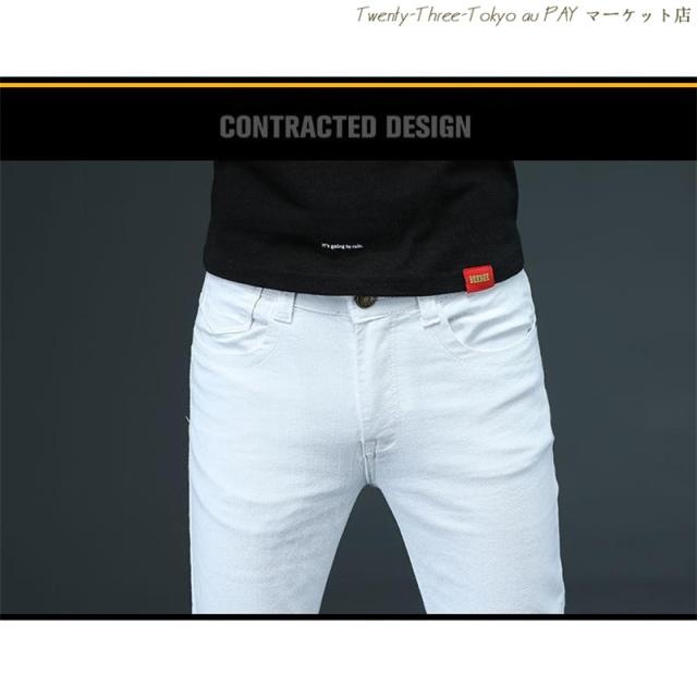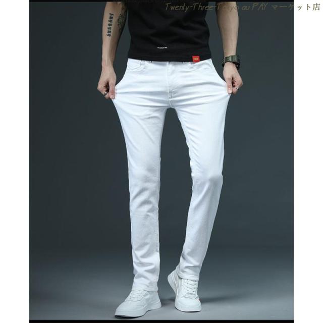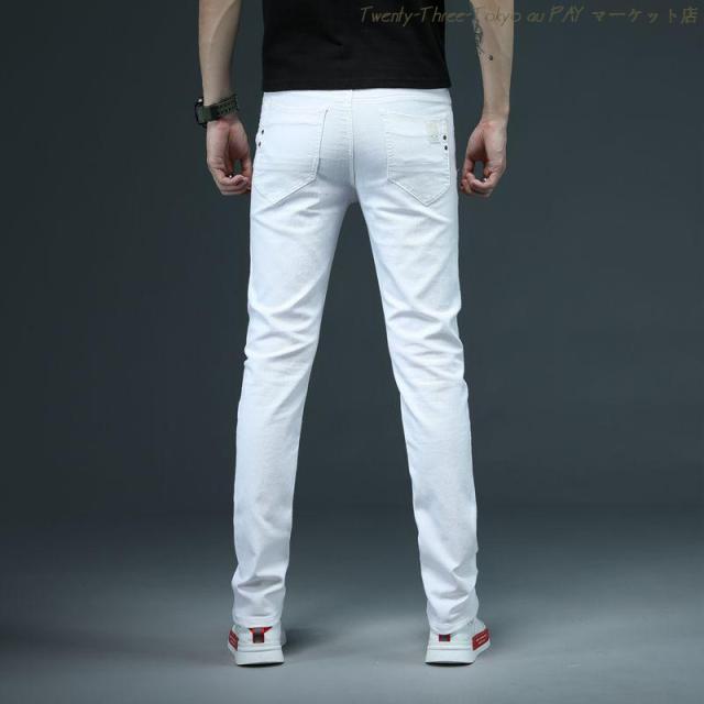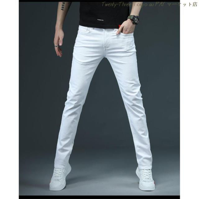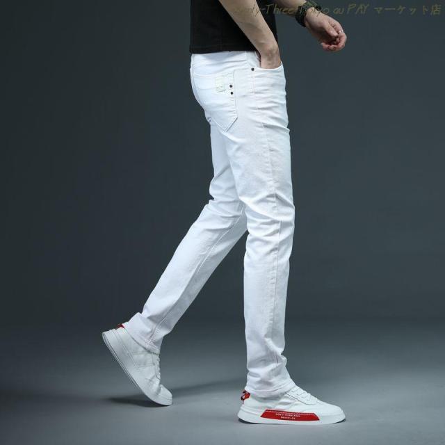 送料無料 ホワイトジーンズ スキニーデニム メンズ デニムパンツ メンズ ストレッチ ジーンズ ビジネス ホワイト 白 ズボン 爽やか 薄手