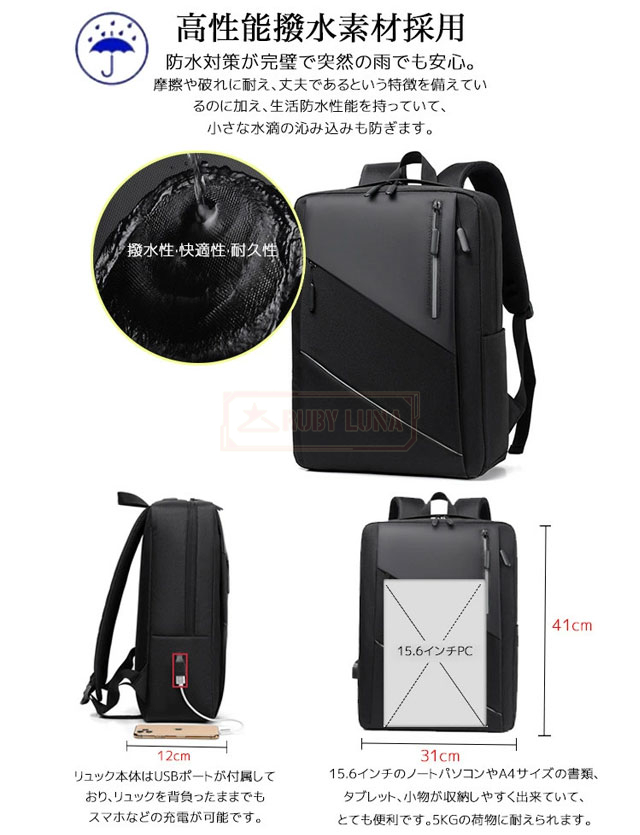 最安挑戦 冬新作 送料無料 新作 リュック メンズ リュックサック USB充電 大容量 通学 通勤 ビジネスバッグ 機内持ち込み PC 鞄 ファスナー ベルト A4サイズ収納可能 高校生 会社員 ビジネス 鞄 防水 撥水