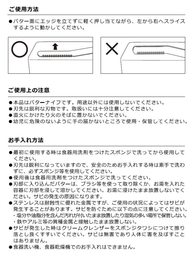 | 特徴 | 斜めの穴状の刃で固いバターでも糸状にけずれ、ふんわり塗れるバターナイフ。 一体成形なので、丈夫で汚れの溜まりもなく、衛生的にお使いいただけます。 ギザ刃部分はコゲ落としに使用できます。 ■ネコポス(メール便:全国一律300円)での配送もお受けします。 【ネコポス便の条件】 メール便を指定してお買い上げの方に限りますので、配送方法を選択していない場合は宅配便(通常送料)となりますのでご注意ください。 ネコポス対応品以外もお買い上げの場合、ネコポスを選択することができなくなるため、通常の宅配便での手配となります。 大きさの都合上本商品は「3個」までネコポス対応となりますので、4個以上お買上げの場合はネコポスの複数個口か通常の宅配便で手配します。 ネコポスの送料はシステムの都合上「数量×送料(300円)」で自動計算されますが、ショップ側でいくつ入るか計算して送料を修正いたします。 『ネコポスについての補足』という画像に詳細を載せておりますので、ご注文前に必ずご確認ください。 送料無料条件をクリアした場合、まとめて宅配便で出荷させていただくことがございます。(どうしてもネコポスがいいという場合はお受けすることもできますが、ネコポス複数個口分の送料をいただきます。) ※住所を元に配達するため、住所不備による配達誤りなどについてはご対応できません。 ※ネコポスは転送ができませんので、ご注文を確定する前に必ずお届け先住所に間違いがないかご確認くださいますようお願いいたします。 ※手渡しではなく投函となるため、郵便受けがない場所へはお届けできません。 ※ネコポスは日時指定ができませんので予めご了承くださいませ。 ※ネコポスの詳細はヤマト運輸ホームページをご覧ください。 ■その他のEAトCOシリーズはこちら↓ EAトCO |