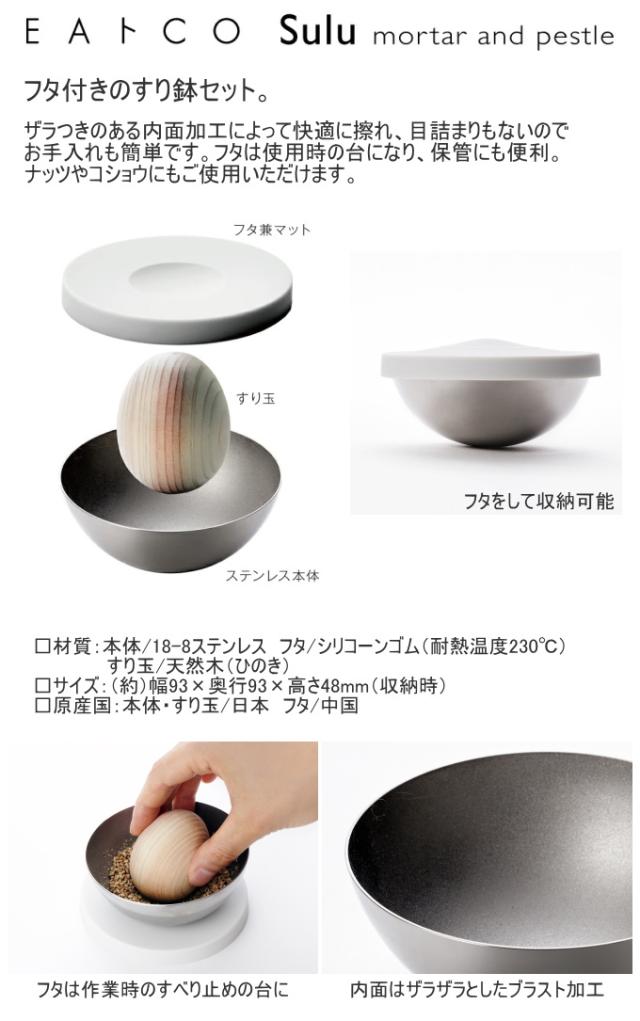 EAトCO スル モルタル アンド ペストル AS0057 送料無料 すり鉢 すり鉢セット すりこぎ フタ付き ごま ゴマ ナッツ コショウ ステンレス製 便利 ヨシカワ