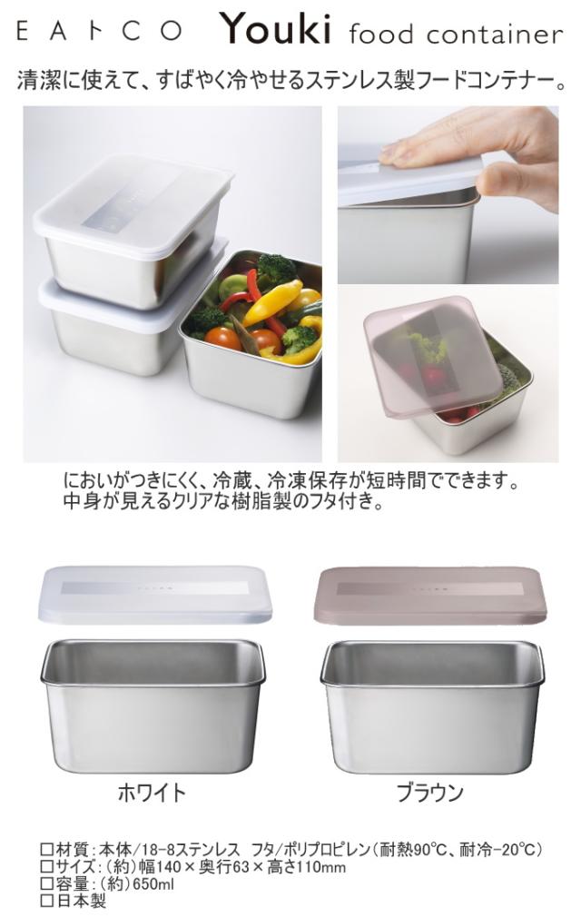 EAトCO ヨウキ フードコンテナー 1個 日本製 送料無料 容器 保存容器 フードコンテナー 650ml 冷蔵 冷凍 保存 ホワイト ブラウン ステンレス製 便利 ヨシカワ
