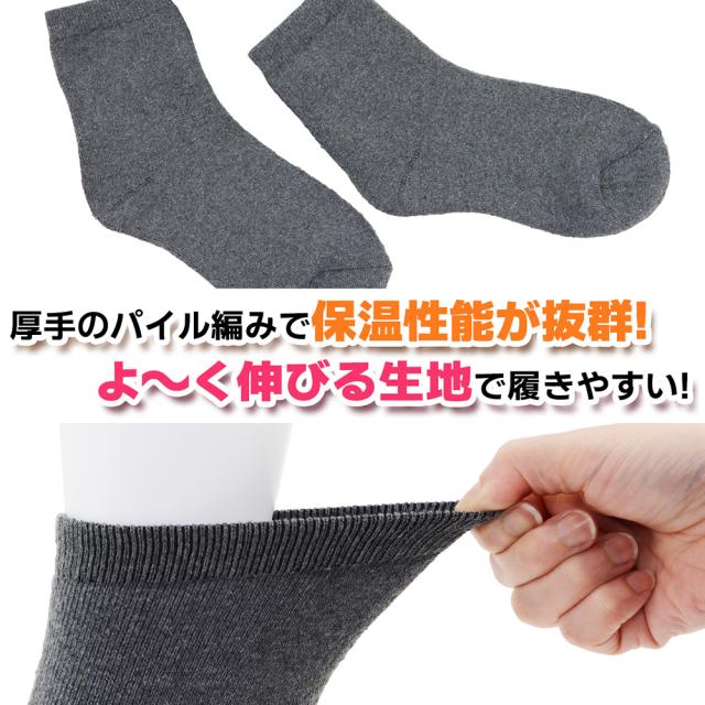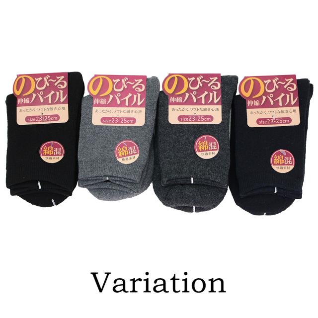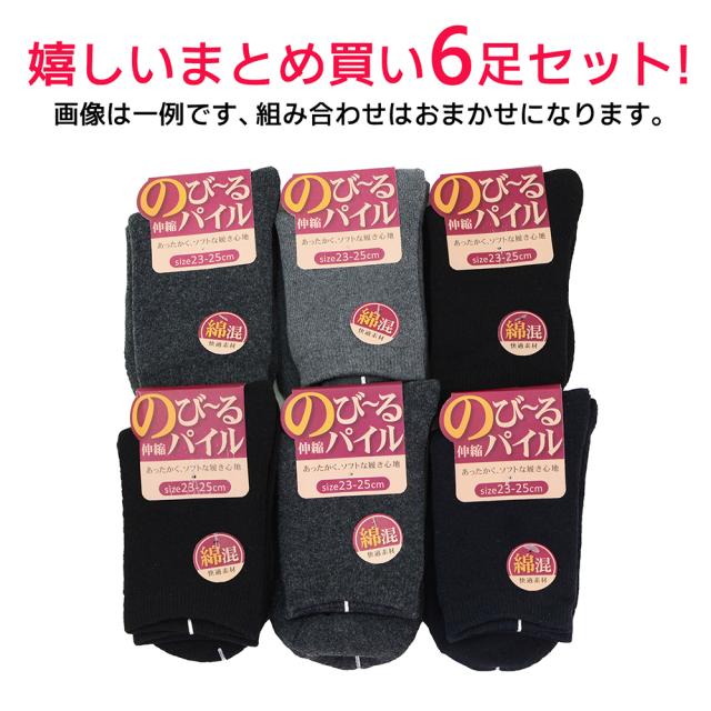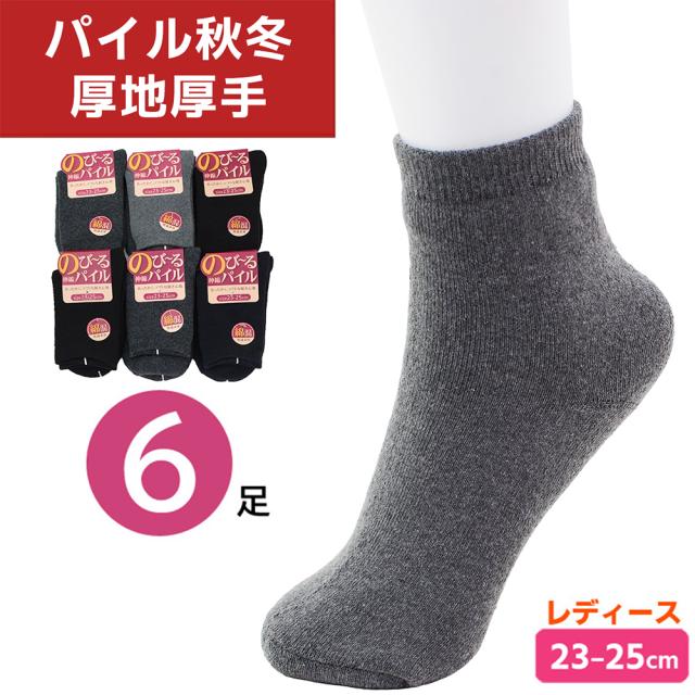 のびる パイル 靴下 暖かい レディース 6足セット クルー丈 23-25cm あったか やわらか ソフトな履き心地 無地【メール便送料無料】婦人 女性 ビジネス カジュアル ウォーキング 秋冬 春 暖かくて伸びるので足元快適 agesugi_sfa