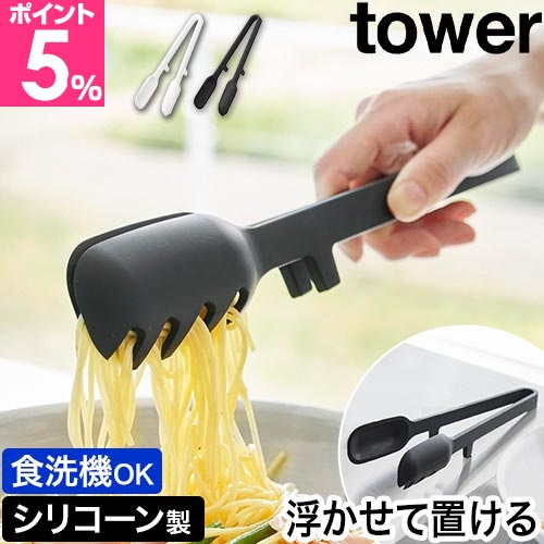 山崎実業 トング シリコーン調理トング タワー 4903208017749 1774 1775 シリコン パスタ 焼肉 オシャレ サラダ 食洗機対応 使い やすい 洗い やすい 麺 おしゃれ 炒め物 傷つかない スプーン ソース 調理用 tower yamazaki タワーシリーズ