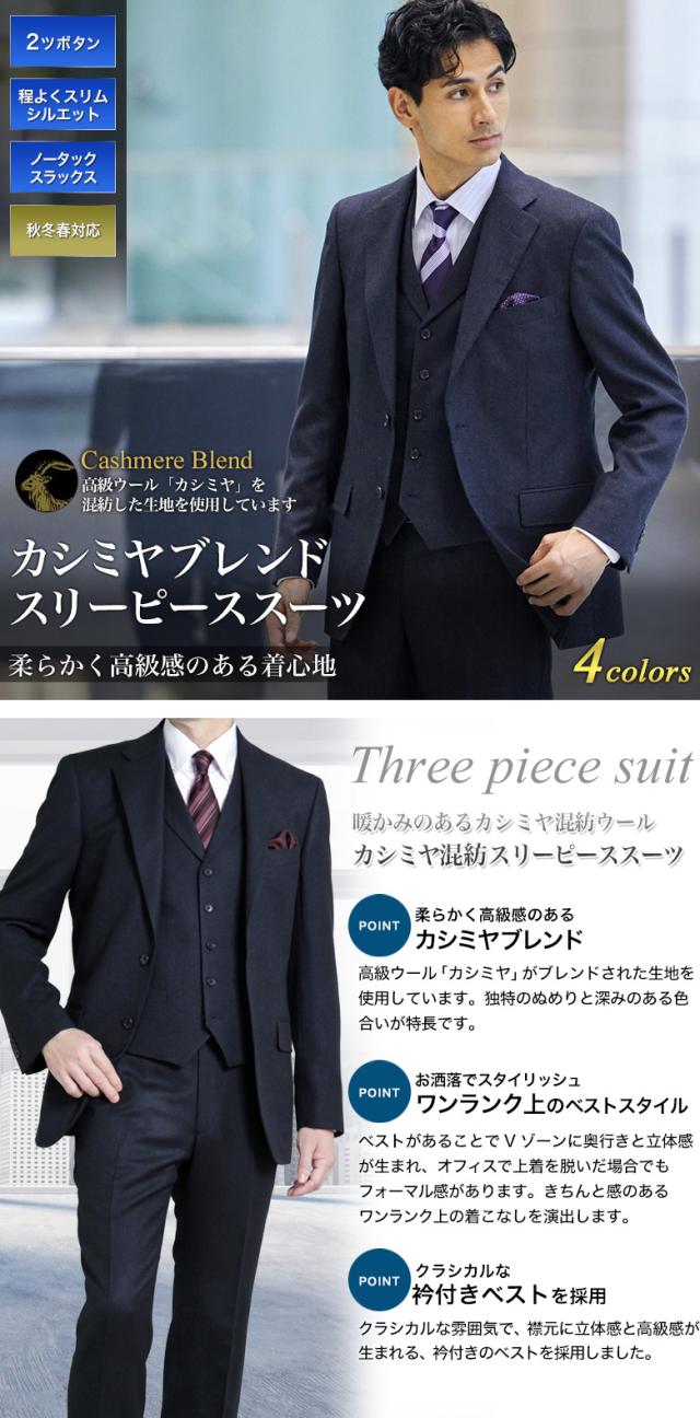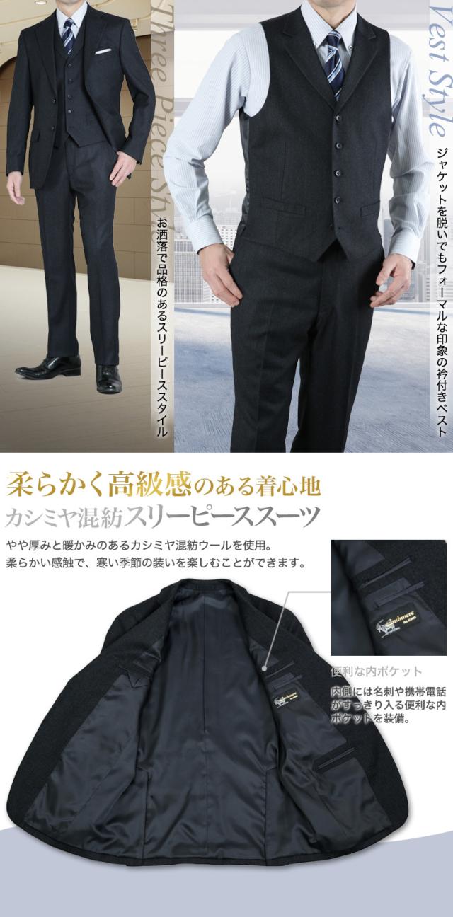 スリーピーススーツ カシミヤ混紡 衿付ベスト メンズ 2つボタン スリム 秋冬 3ピース ビジネススーツ ノータックパンツ オシャレ クラシック ジレ ベスト 柔らか 暖かい ウール95%カシミヤ5% 起毛生地 総裏 おしゃれ 30代 40代 50代