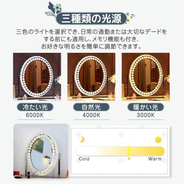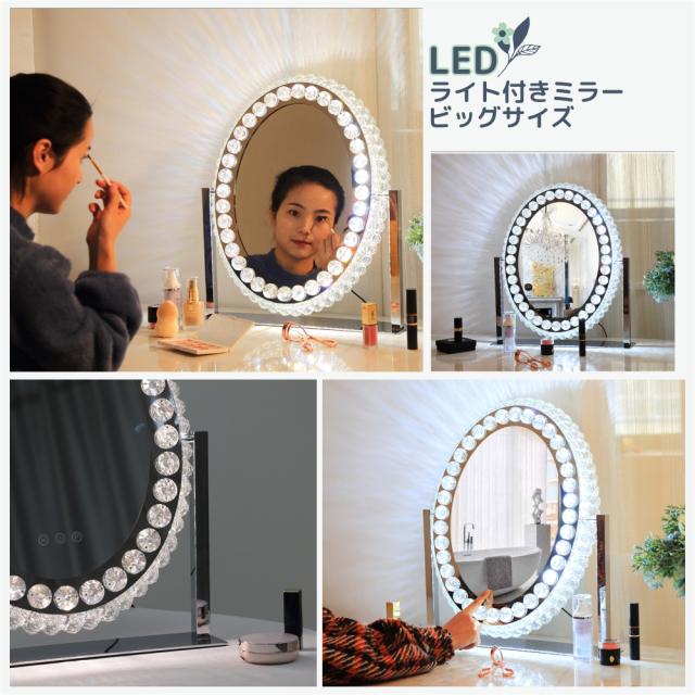 女優ミラー ledライト付き 鏡 ライト付き 化粧鏡 三色調光・無段階調光 女優ミラー 鏡 卓上 ハリウッドミラー タッチスイッチ 記憶機能 高輝度 ドレッサー用 化粧台用