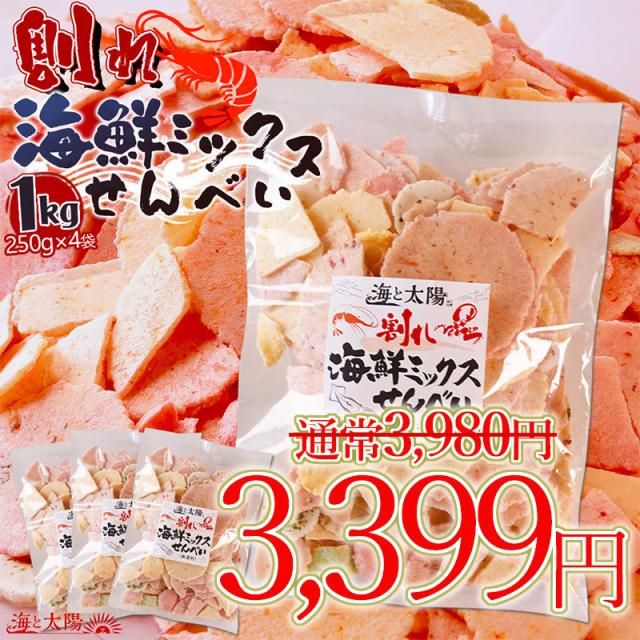 【SALE!581円OFF】<割れ海鮮ミックスせんべい 250g×4袋>※東北・北海道は送料590円をオプション選択 無選別 1kg 訳あり 訳アリ セット 数量限定 送料無料 おやつ おつまみ われせん 大容量 クーポン消化 ポイント消化 クリスマス 年末年始