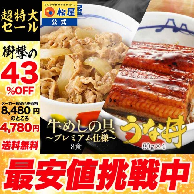 【メーカー希望小売価格8480円→4780円】 松屋のうな丼 鰻&牛めしコンボセット(プレミアム仕様牛めしの具×8 うなぎカット80g×4枚) ウナギ 鰻 うなぎ 鰻のかば焼き 鰻の蒲焼 土用の丑の日 中元 手土産 ギフト2026 まつや 受験生応援 牛丼 食品 グルメ 非常食