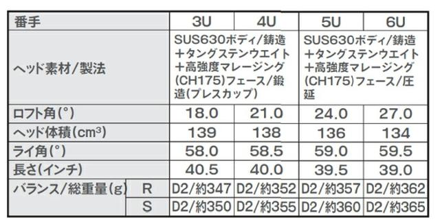 【番手(ロフト角)】3U(18.0度)、4U(21.0度)、5U(24.0度)6U(27度)