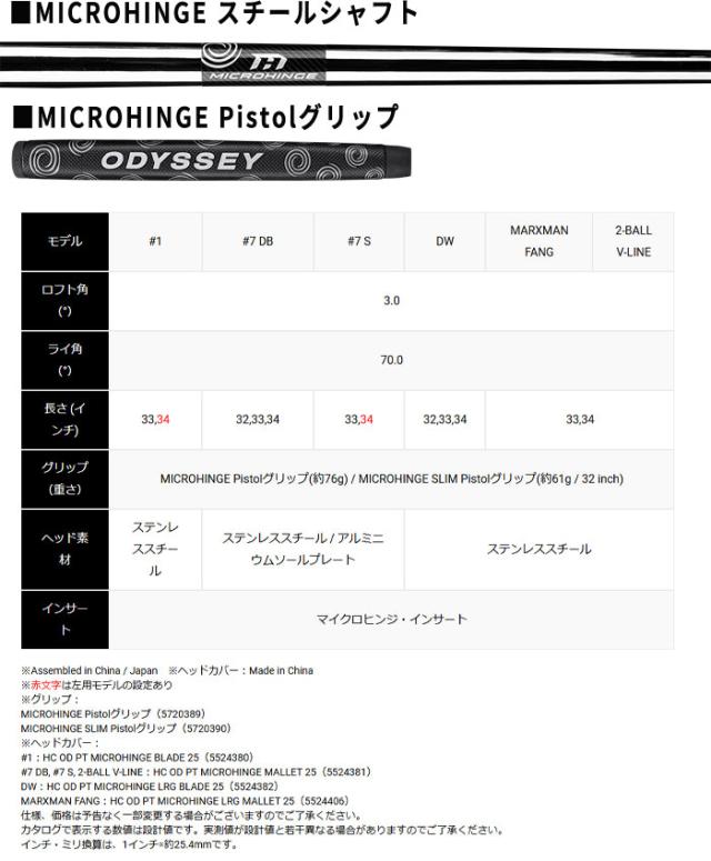 オデッセイ MICROHINGE パター スチールシャフト装着 2024年モデル[ODYSSEY マイクロヒンジ][日本仕様 日本正規品]