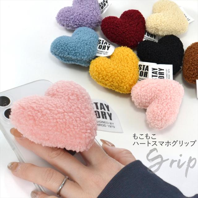 スマホグリップ グリップトック ハート スマホスタンド ポップアップ 落下防止 スマホホルダー グリップスタンド もこもこ ふわふわ ファー 韓国 かわいい スマホリング 伸縮 スタンド機能 360度回転 iPhone アンドロイド 秋冬 アイテム