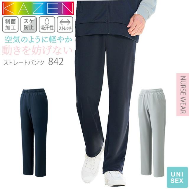 ストレートパンツ カゼン 白衣 医療用 スクラブパンツ KAZEN 842 ストレッチ 透け防止 吸汗 ユニフォーム メンズ レディース 男女兼用 医師 看護師 歯科 動物病院 リハビリ 介護 クリニック エステ服 術衣 ネイビー サンアロー