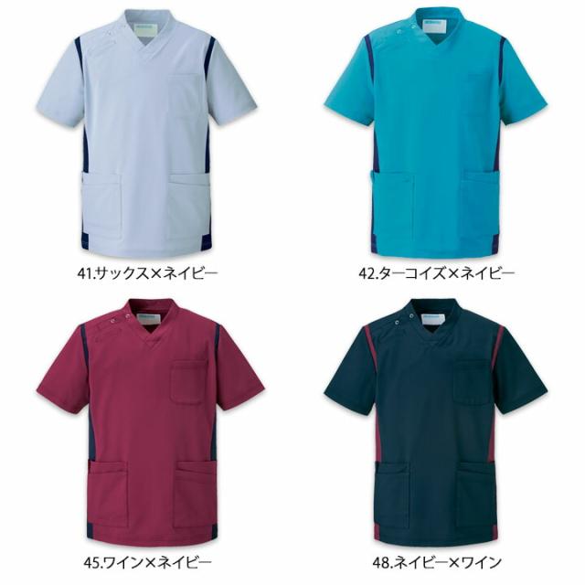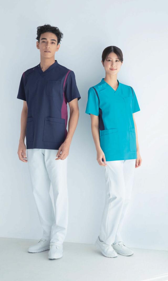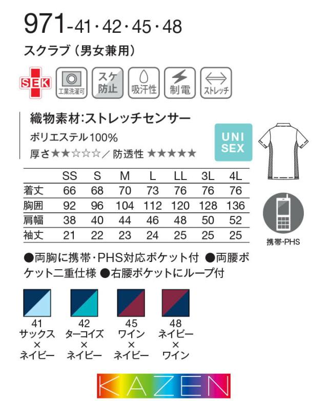 スクラブ カゼン 白衣 医療用 KAZEN 971 レディース メンズ 男女兼用 ストレッチ 透け防止 吸汗 制電 ユニフォーム 医師 看護師 歯科 動物病院 リハビリ 介護 クリニック エステ服 術衣 ネイビー ワイン サンアロー