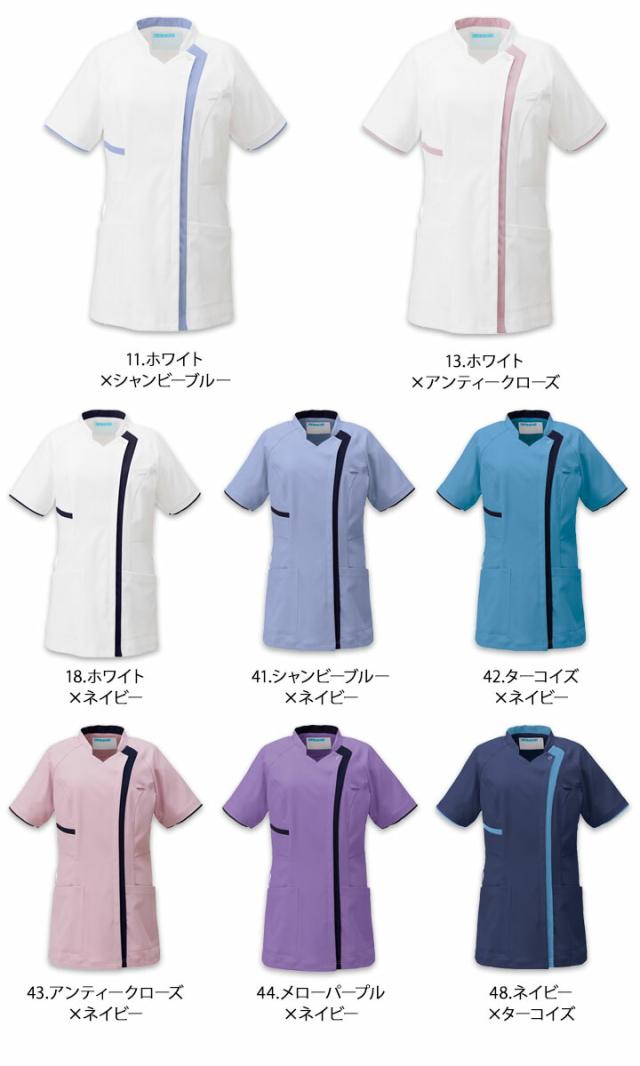 スクラブジャケット 白衣 医療用 カゼン KAZEN KZN702 レディース 半袖 ストレッチ 透け防止 防汚 制電 ユニフォーム 医師 看護師 歯科 動物病院 リハビリ 介護 クリニック エステ服 術衣. ピンク ホワイト ネイビー サンアロー