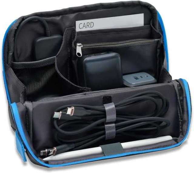 Anker製品に合わせた特別仕様。複数ポケットや内部の仕切りを活用し、USB充電器やケーブル等をピッタリと収納できます。