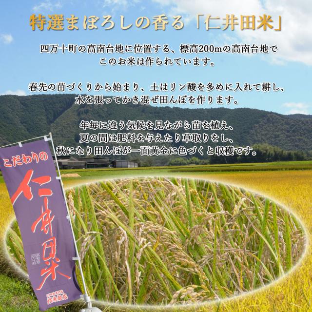 この四万十の「仁井田米」をより多くのご家庭に、安心して美味しく食べていただけますように、精米したてのお米を当日にお客様に発送するように心がけております。