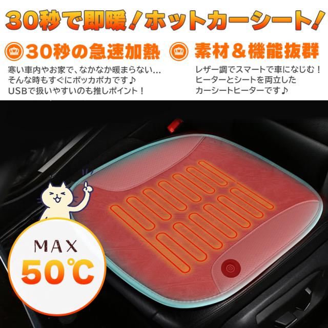 カーシート ヒーター ホットカーシート ヒータークッション USBタイプ シートヒーター 4カラー車 家 即暖 座席 ホット 座布団 2段階 温度調節 レザー調 ヒーターマット 電気 暖かい 電気マット クッション 防寒 寒さ対策 すぐ暖まる 過熱防止 暖房 保温 車内 ホット
