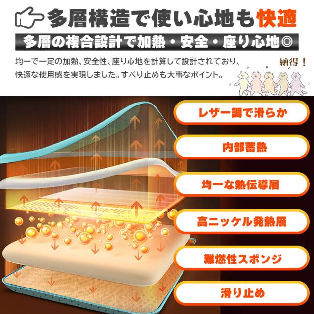 『寒い車内で即ぽかぽかクッション』◎おしゃれなレザー調素材で座り心地快適♪◎【30秒ですぐぽかぽか♪】寒い冬に最適のホットシート!暖房はなかなか暖かくならないし、冷たい座席もつらい...そんな悩みを解決してくれる簡単設置&すぐぽかぽかの本製品。すぐ暖まるので、我慢していた寒さを耐える待ち時間を解消!(※暖まるまでの時間は、環境によります。)
