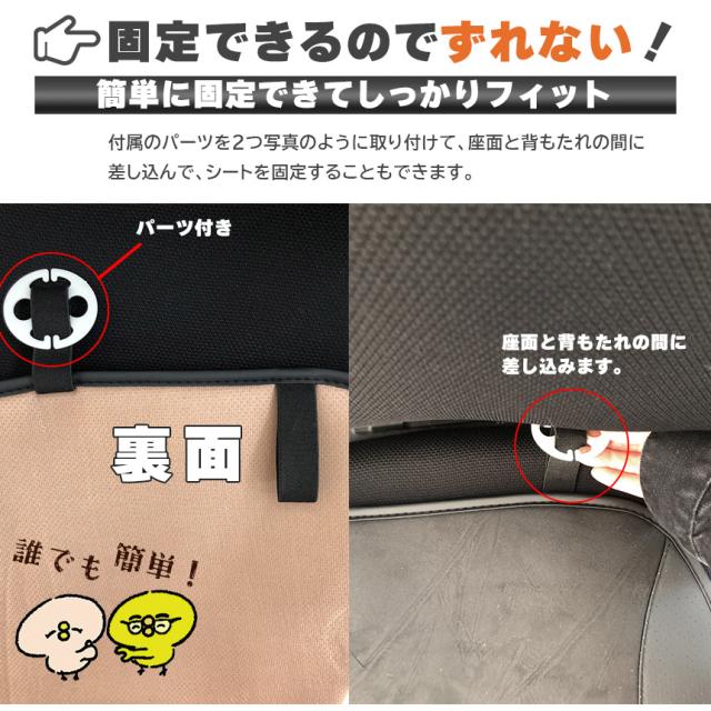 また、付属のパーツを裏面のゴムに取り付けて、座面と背もたれの間に差し込むだけで簡単に固定出来てズレ防止に!