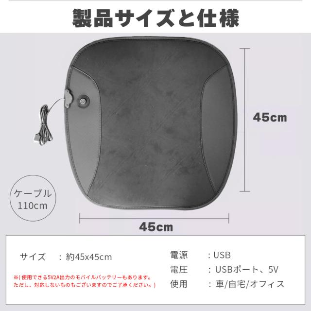 座席においてUSBポートに付属のケーブルを挿すだけの簡単取り付け!取り付けが簡単なので、使わないとき、しまっておきたいときもすぐ取り外せます。電源USBから取れるので、電池切れ等の心配は一切ございません。滑りにくい底部採用で滑りにくく、座面から動きにくいです。