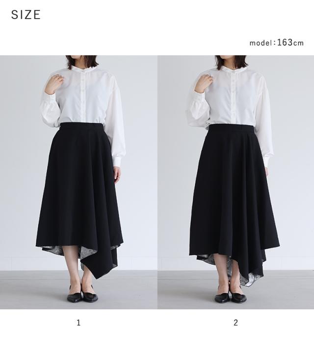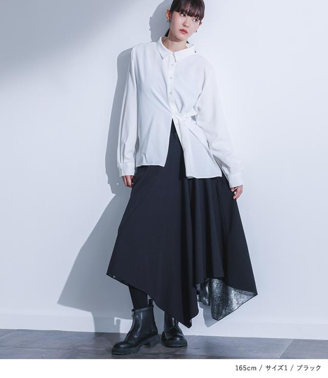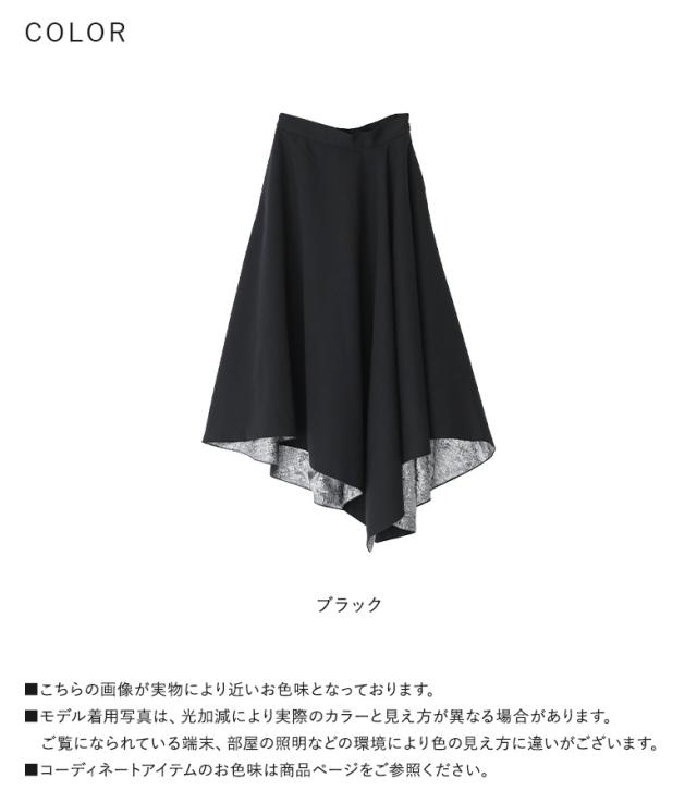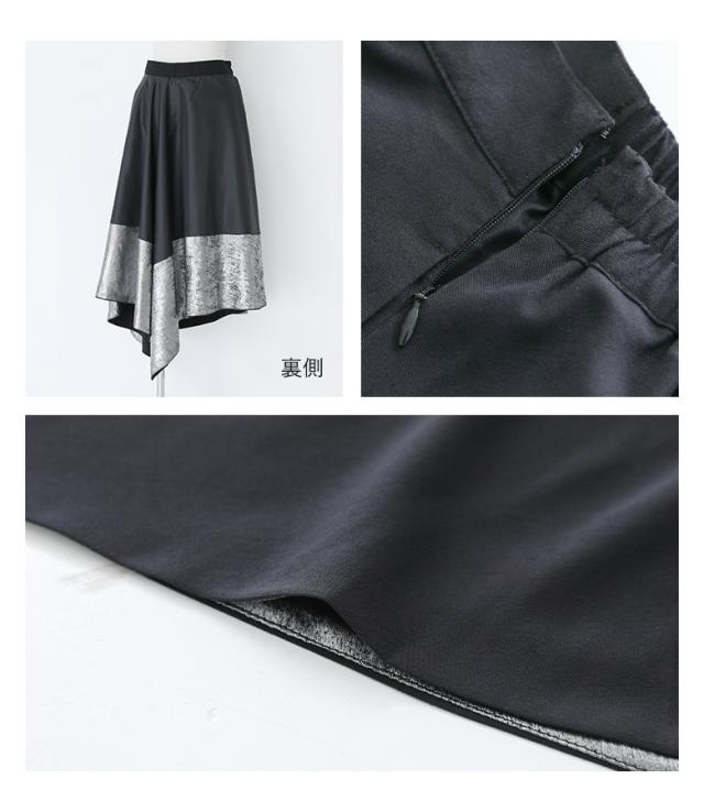 『箔切替アシメフレアスカート』【メール便不可】【20】[スカート レディース フレアスカート ボトムス フレア アシメ アシンメトリー 箔生地 スーツ生地 きれいめ モード 上品 オシャレウォーカー]
