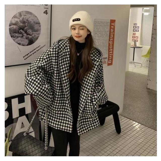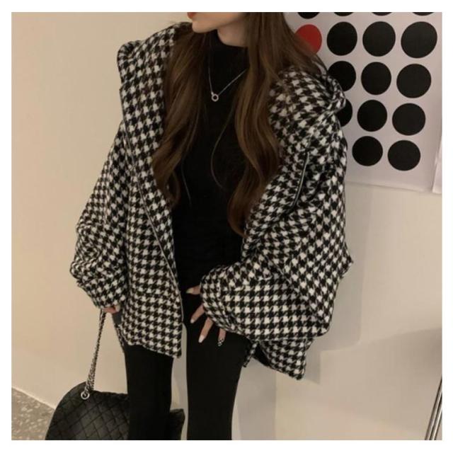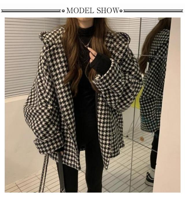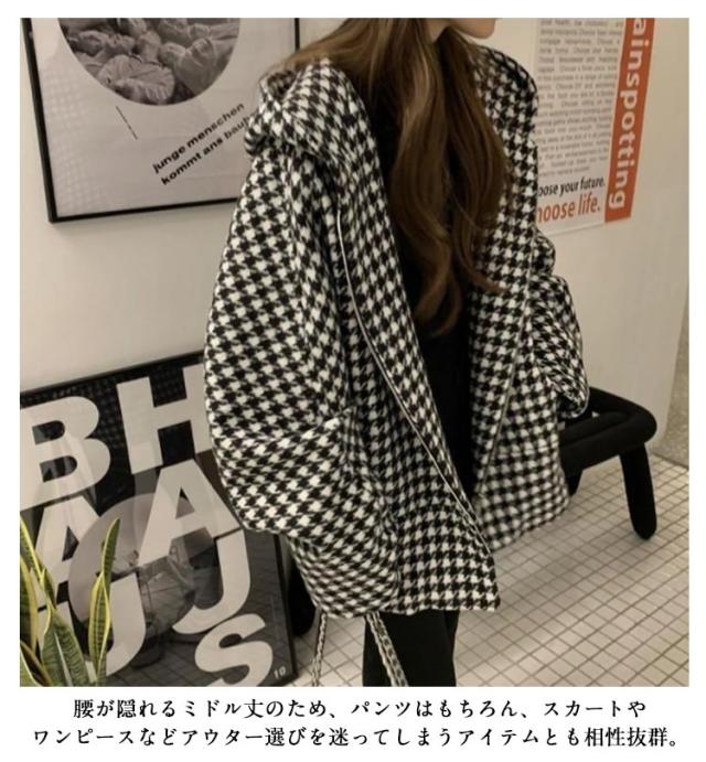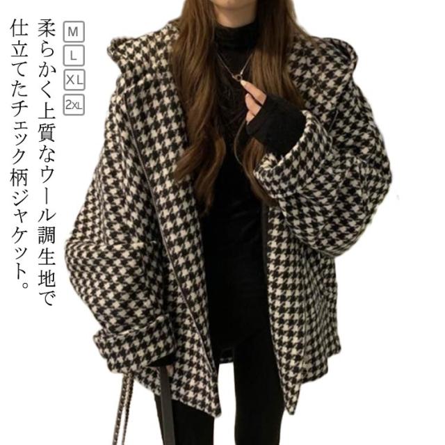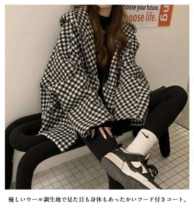 フード付き ゆったり コート チェック柄 アウター 防寒 長袖 コート チェック柄 コート きれいめ ミドル丈 フーテッドコート 大きいサイズ ジャケット あったか お洒落 ウール調 カジュアル かわいい