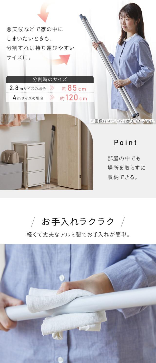 物干し竿 1.6〜2.8m 伸縮物干し竿 アルミ ストレート ハンガー掛け付 軽量 組立簡単 屋外 ベランダ物干し 室内 物干し 梅雨 花粉 アイリスオーヤマ AL-280C AL-280CH *