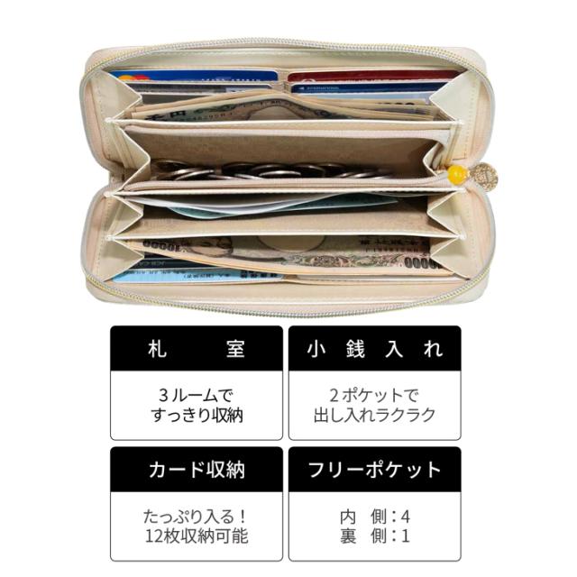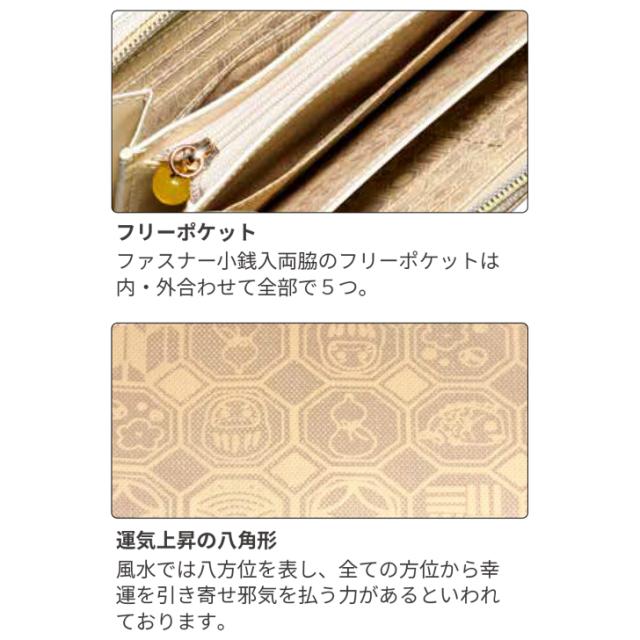 - 注文して、次の日に届き早くてびっくりしました。ゴールドを購入しましたが、派手すぎずに落ち着いた色で良かったです。引き手に可愛いシトリンと金の亀さん、とっても素敵で、お金引き寄せてくれそう!! 仕切りも...