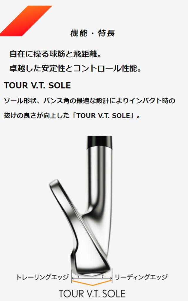 ・ヘッド素材:フェース/クロムバナジウム鋼、ボディ/軟鉄(S20C)+タングステンニッケル合金