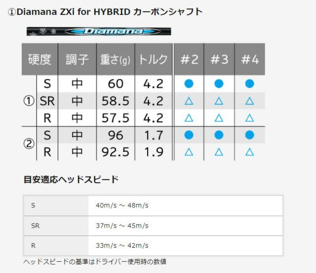 ・シャフト:DiamanaZXiforHYBRIDカーボンシャフト(S:60g)、中調子