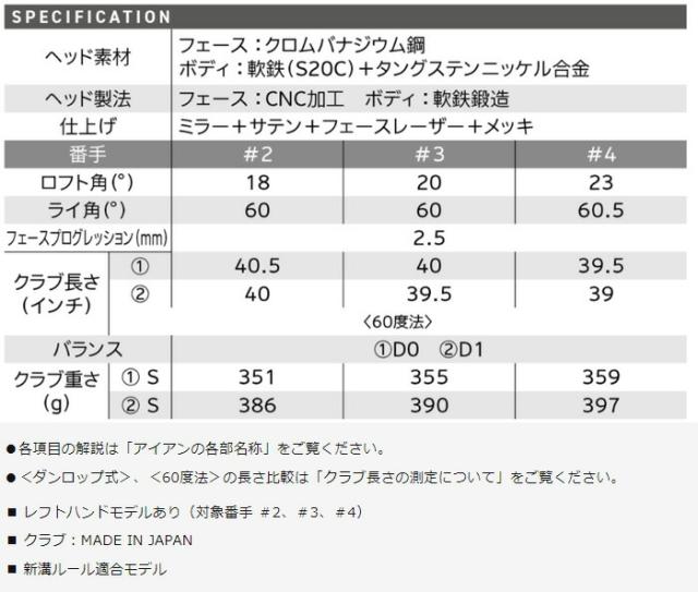 ・ライ角(°):60(#2、#3)、60.5(#4)