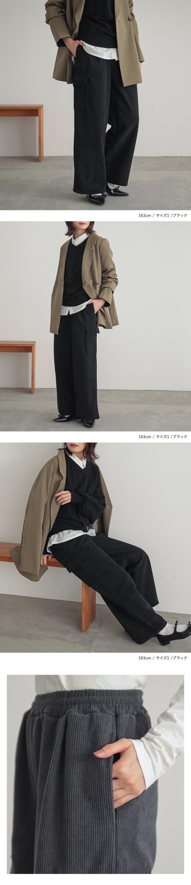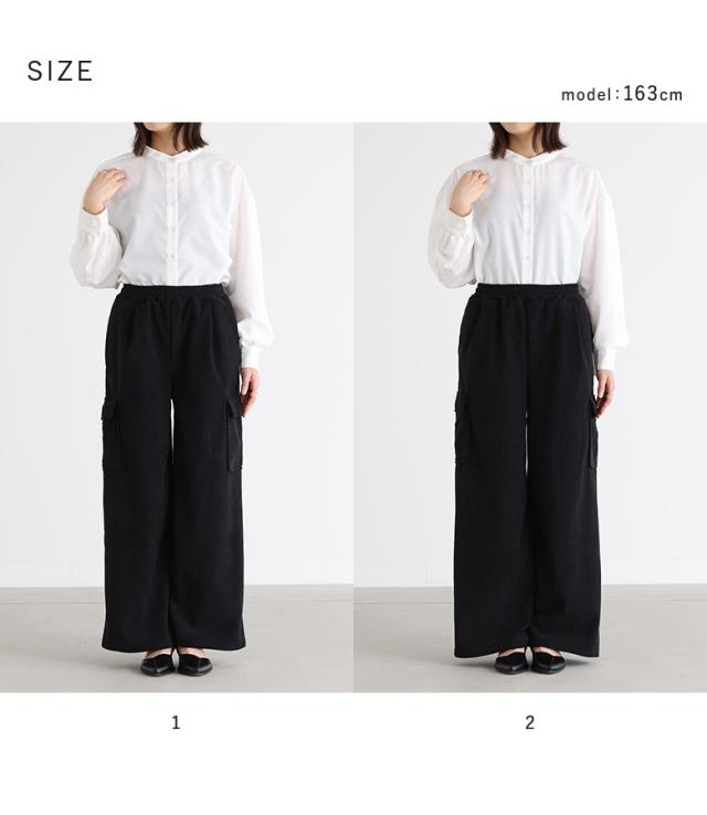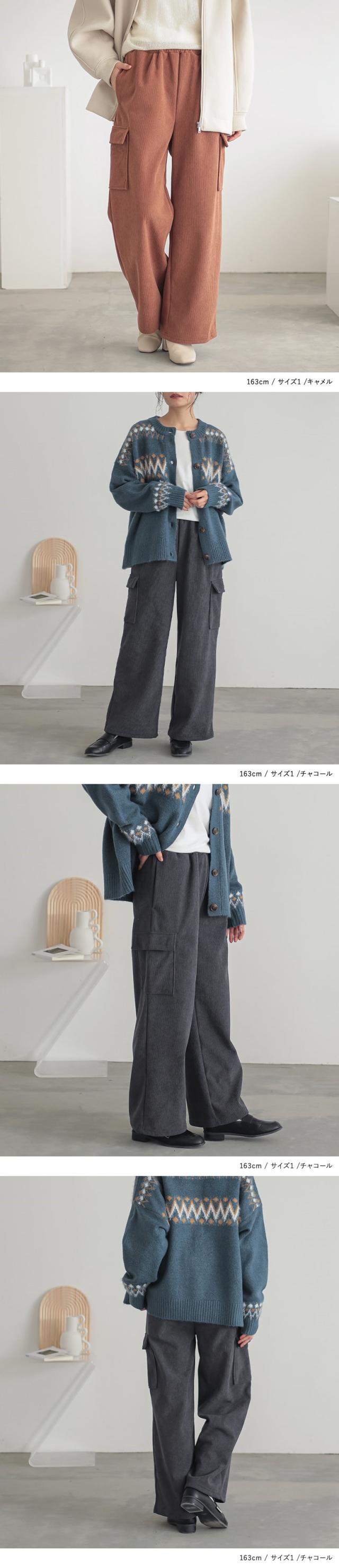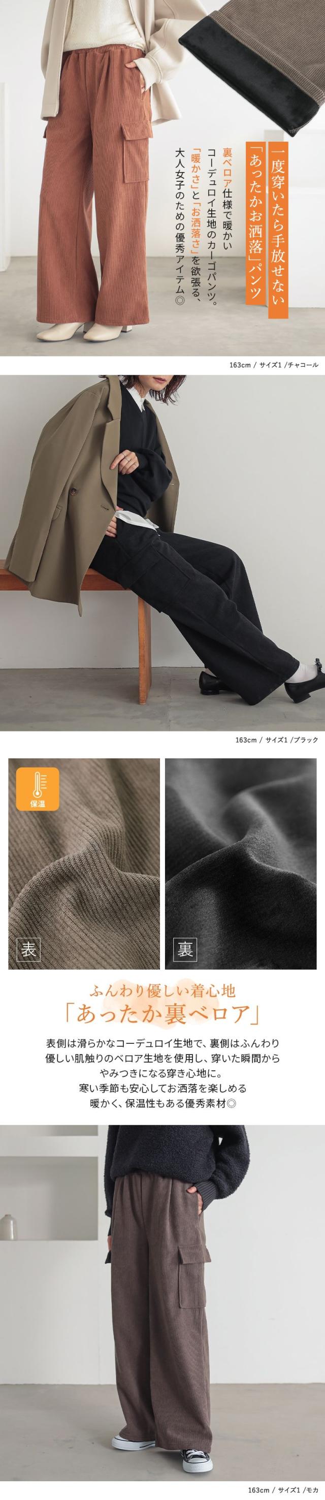 『裏ベロアコーデュロイカーゴパンツ』【メール便不可】【40】[ボトムス レディース パンツ カーゴパンツ ワイドパンツ レディースパンツ 裏ベロア コーデュロイ あったか オシャレウォーカー]