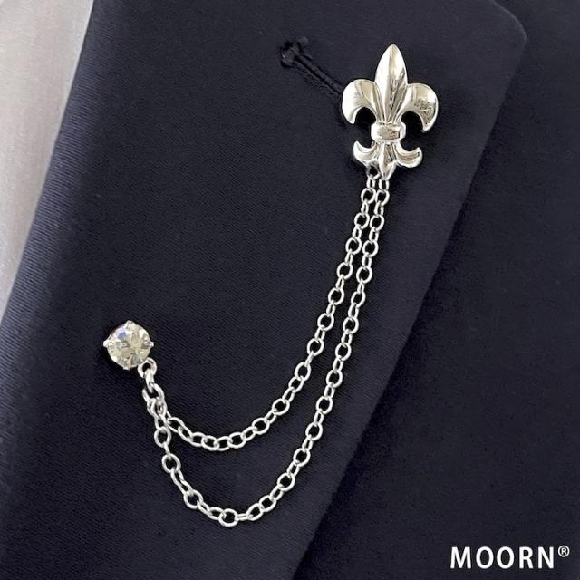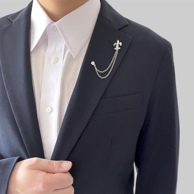 メンズ ブローチ ピンブローチ タックピン 百合の紋章 チェーン ブローチ ストーン ラペルピン 結婚式 ゲスト 普段使い 入学式 卒業式 成人式 お祝い ギフト おしゃれ シルバーアクセサリー プレゼント ゆりモチーフ