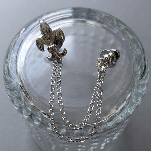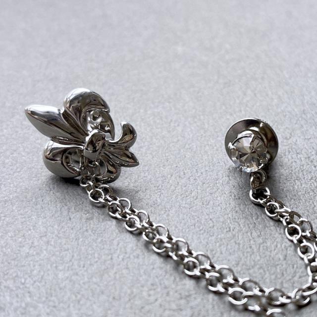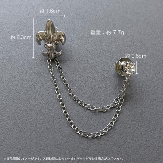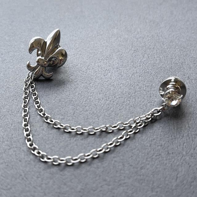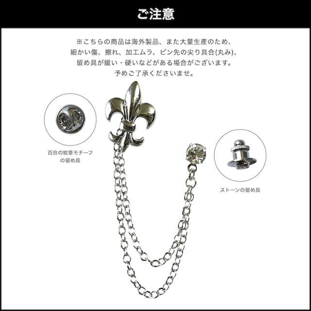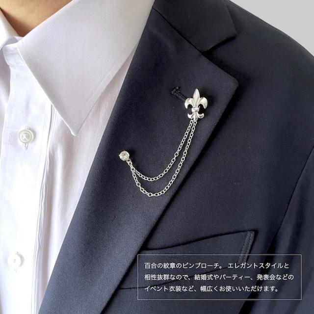 メンズ ピンブローチ タックピン 百合の紋章 チェーン ブローチ ストーン ラペルピン 結婚式 ゲスト 普段使い 入学式 卒業式 成人式 お祝い ギフト おしゃれ シルバーアクセサリー プレゼント ゆりモチーフ