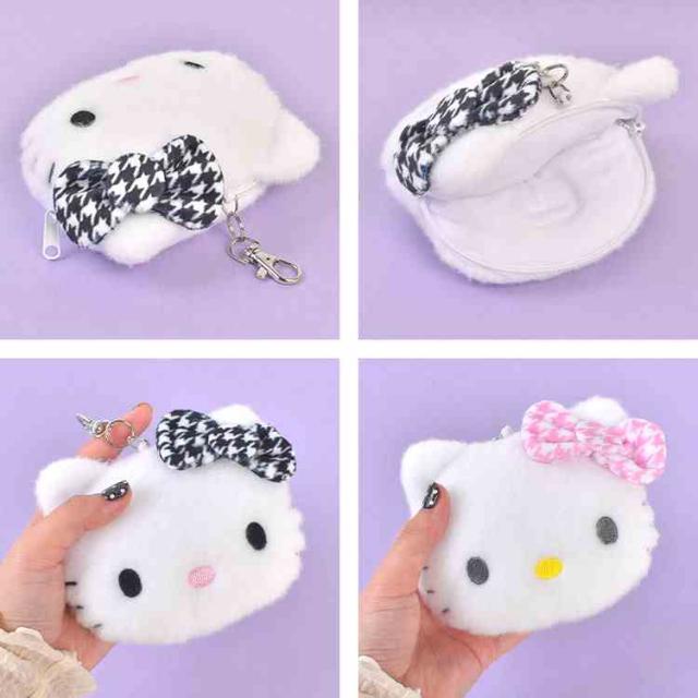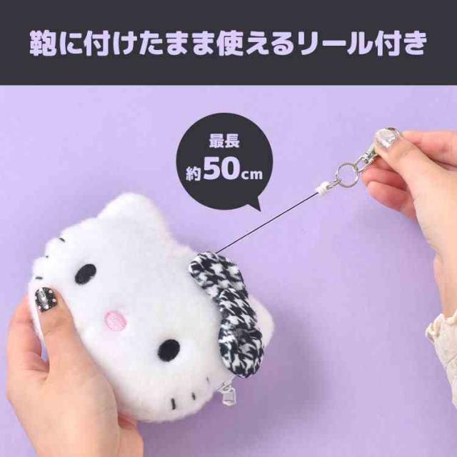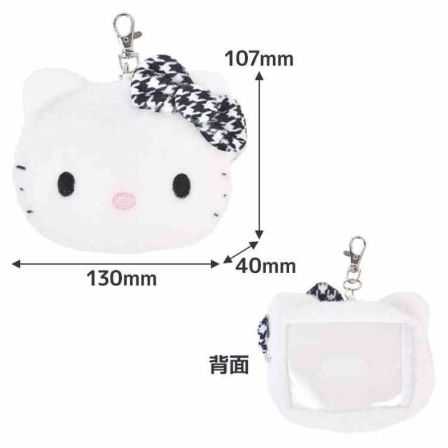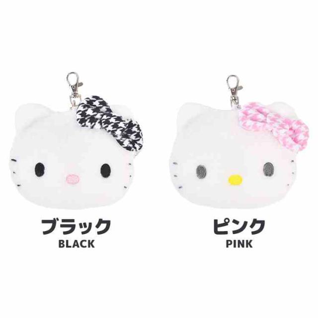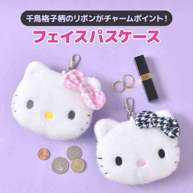 パスケース ぬいぐるみ サンリオ Sanrio キティちゃん ハローキティ 千鳥格子柄 フェイスパスケース リール付き 小銭入れ 定期入れ ICカード 収納 小物入れ ミニポーチ カード入れ 窓付き バッグ 鞄 キーホルダー かわいい ブラック ピンク 女の子 誕生日 プレゼント ギフト