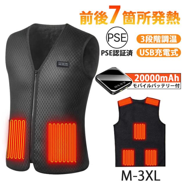 加熱ベスト 電熱ベスト【加熱パネル7枚 モバイルバッテリー付属】 ヒーターベスト 3段階温度 速暖 洗える 電熱ジャケット メンズ レディース 発熱ベスト 電熱ウェア 防寒ベスト ヒータージャケット アウトドア 加熱服 屋外作業 防寒対策 敬老の日