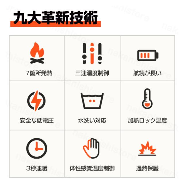 最新版電熱ベストは薄くて軽くて七つヒーターを採用して、着心地がよいです。加熱後ゴム臭など問題も改良しました。電気の力を使用し寒い冬でもぽかぽかに過ごせる電気ベストです。ご年配の方など寒さが苦手な人にお勧め!