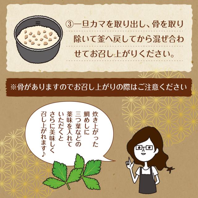 鯛の切り身には骨がありますので、十分注意してお召し上がりください。