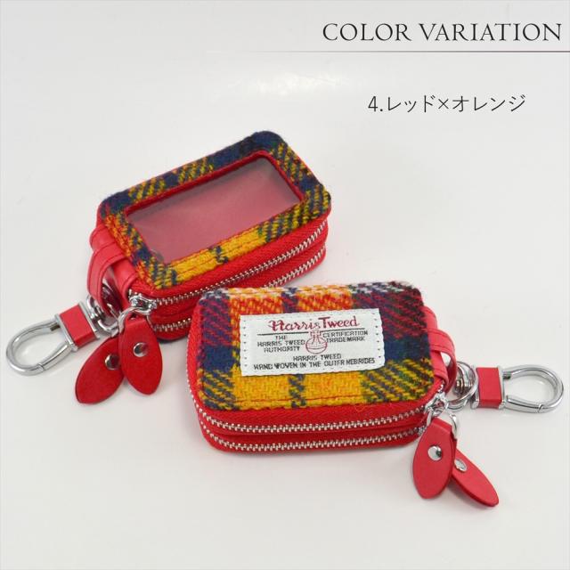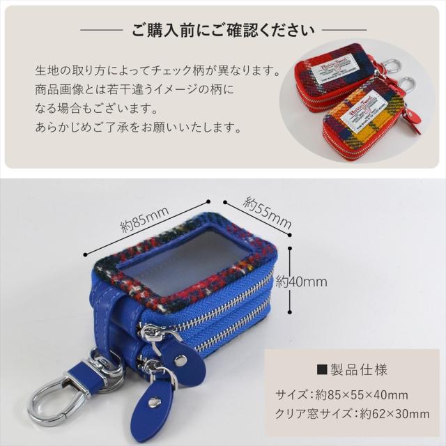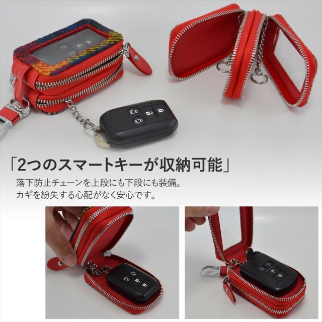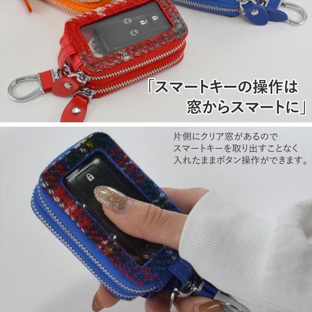 スマートキー 2個収納 ケース スマートキーケース クリア窓付き キーケース ハリスツイード レディース クリア窓 チェック柄 ハリス キーカバー スマートドア ダブルジッパー シルバー カラビナ付き タータンチェック チェッカーズ 車 秋冬