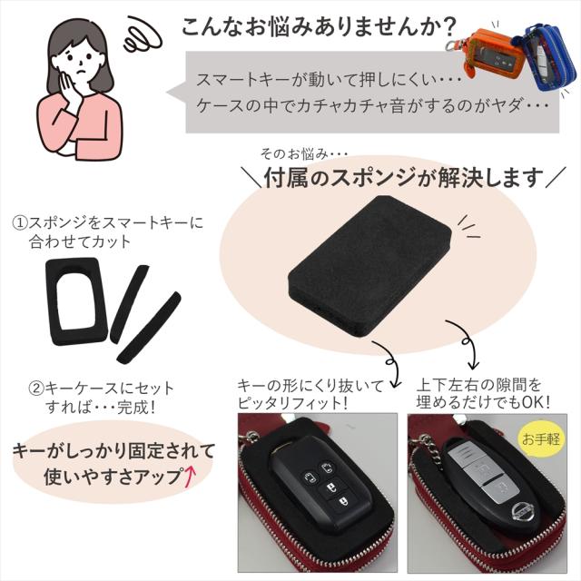 スマートキーの操作性をアップするための固定用スポンジ付き