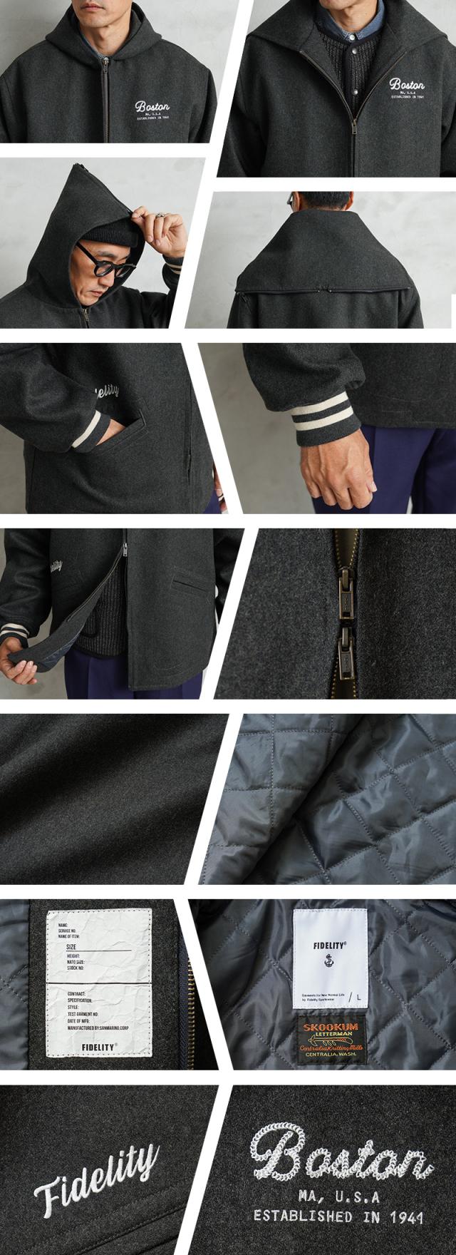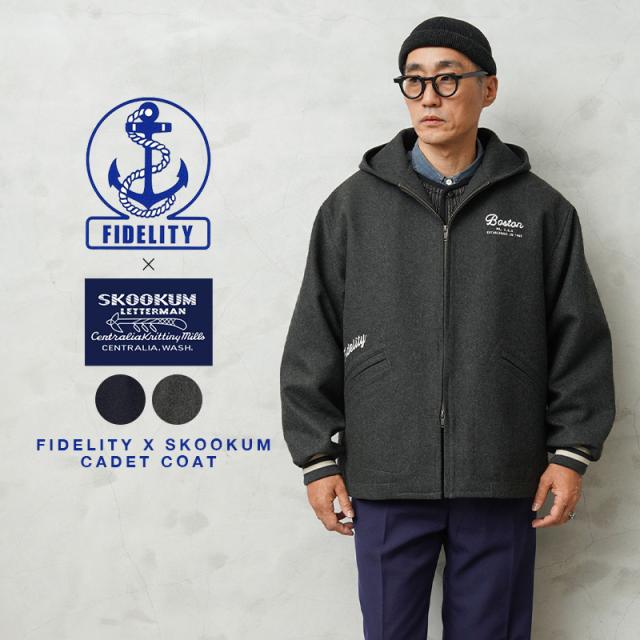 FIDELITY フィデリティ 24775900 FIDELITY × SKOOKUM CADET COAT カデットコート【Cx】【T】|メンズ ファッション アメカジ スクーカム アウター USMA サテン キルティング スタジャン 防寒 ワイドシルエット コラボ BOSTON 刺繍