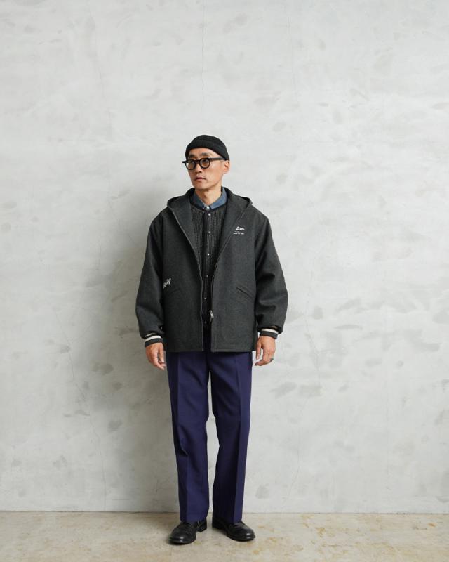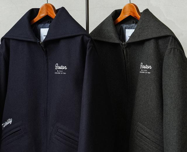 70年代のUSMAのカデットコートをモチーフに、ワイドシルエットに仕上げた、SKOOKUM/スクーカムとのコラボで生まれたアイテムの登場です。生地は総キルティングのサテン裏地で保温性も高く、程よい厚みで着心地のよい仕様です。左胸にはFIDELITY発祥の地BOSTONの刺繍と右ポケットのFIDELITYの刺繍がされており、とても良いアクセントになっています。フードのZIPはフードの後頭部から開閉式で、ZIPを開くと一直線にフードが広がるカデットコートならではの特徴的なデザイン。デザイン性と防寒性を兼ね備えたディテールになっています。