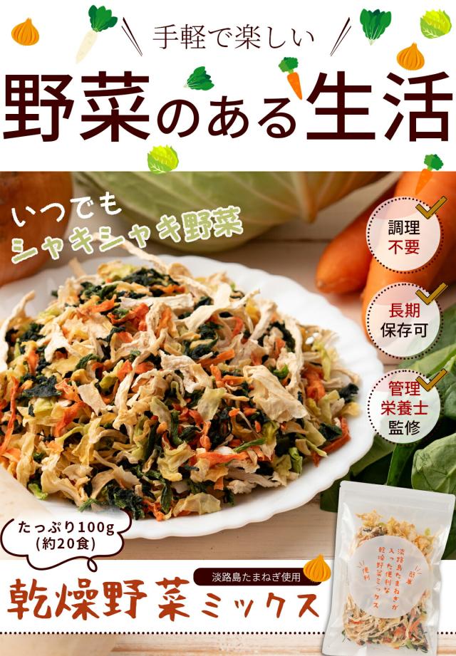 乾燥野菜ミックス 100g 約20食 #乾燥野菜ミックス# 淡路島産たまねぎが入った便利な乾燥野菜ミックス 淡路島産たまねぎ 玉ねぎ 人参 キャベツ 大根 ほうれん草 便利 簡単 乾燥 野菜 今井ファーム share_gourmet agesugi_sgu