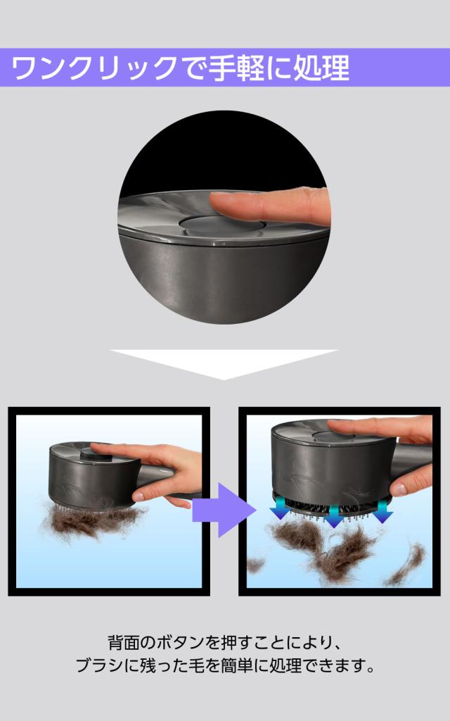 毛がたまり吸引力が落ちたときは、ボタンをワンプッシュすると絡まった毛をリリースします。