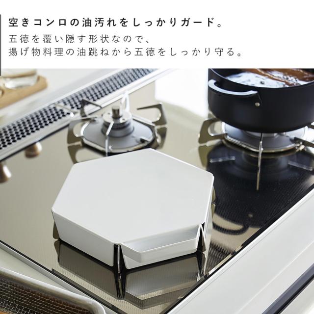 使用していない五徳を油汚れからしっかりガード!コンロ奥などに立ててスリムに収納ができる五徳カバー。