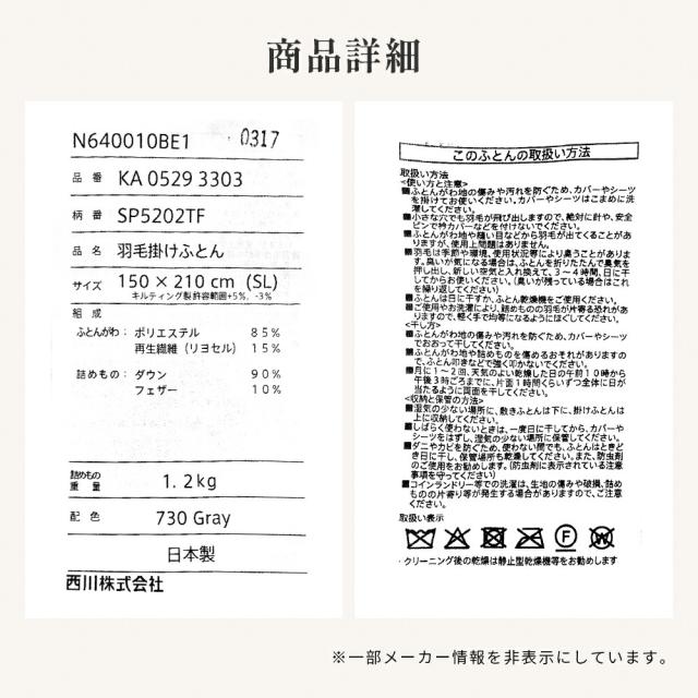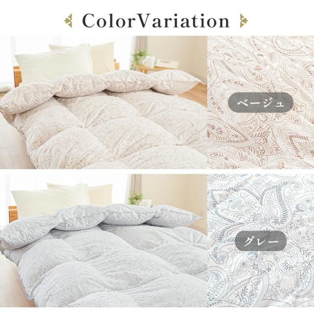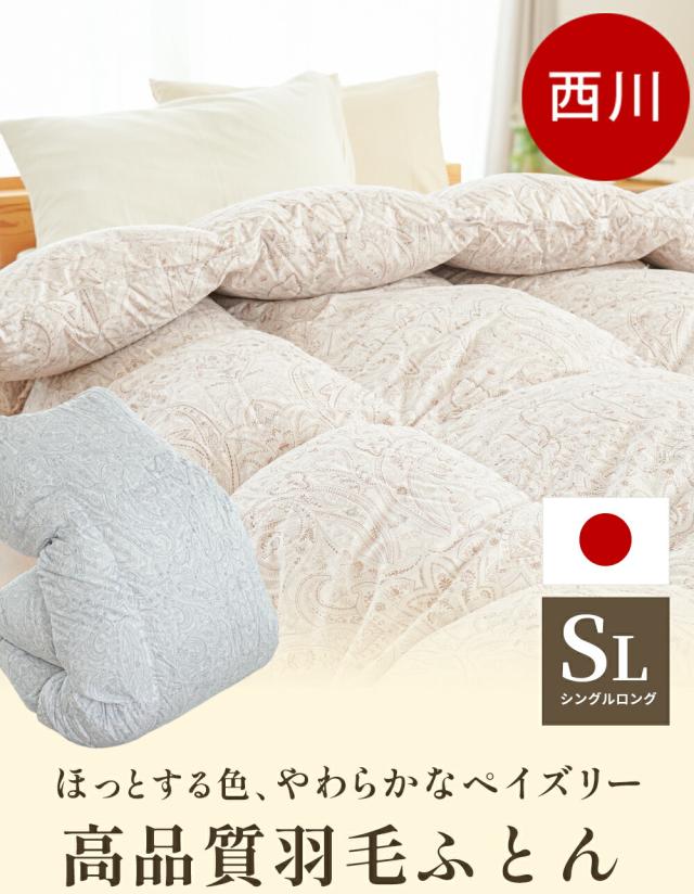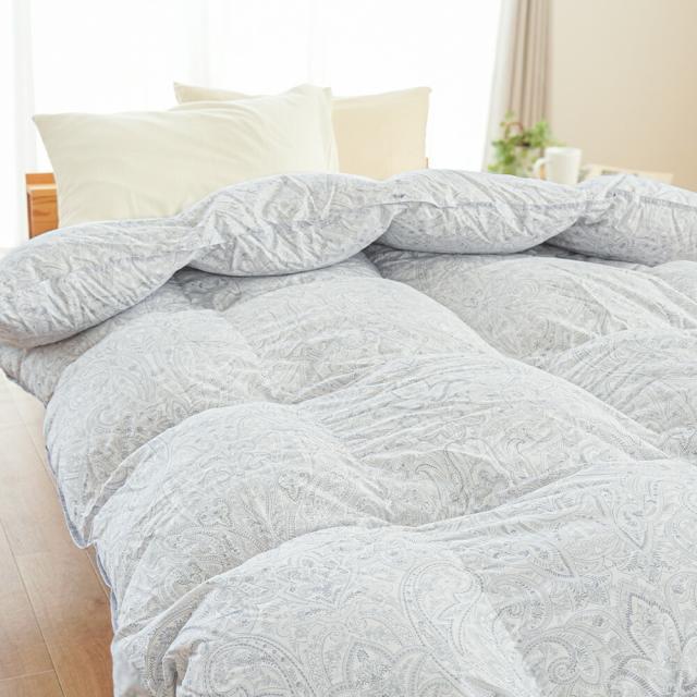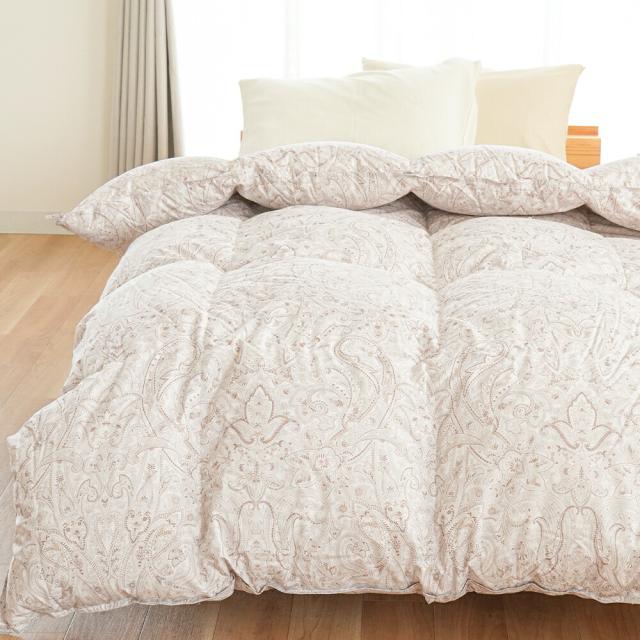 [keyword| 羽毛布団 シングルロング 150×210 ダウン 90% 立体キルト 日本製 リヨセル 再生繊維 ポリエステル 吸湿 通気 西川 グレー ベージュ 1.2kg ペイズリー 淡い 淡色]